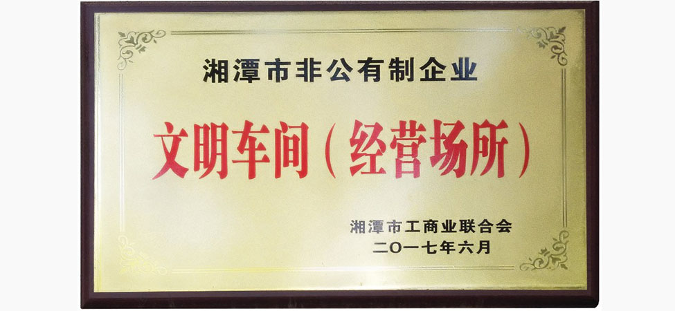 公司总装车间荣获湘潭市“文明生产车间”的光荣称号;公司党支部荣获雨湖区委“两学一做”先进单位。